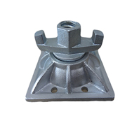 The Slope Plate is a combination of a wing nut and a plate, used for inclined formwork. The wing nut is undetachable from the plate. Both the plate and the nut are cast.